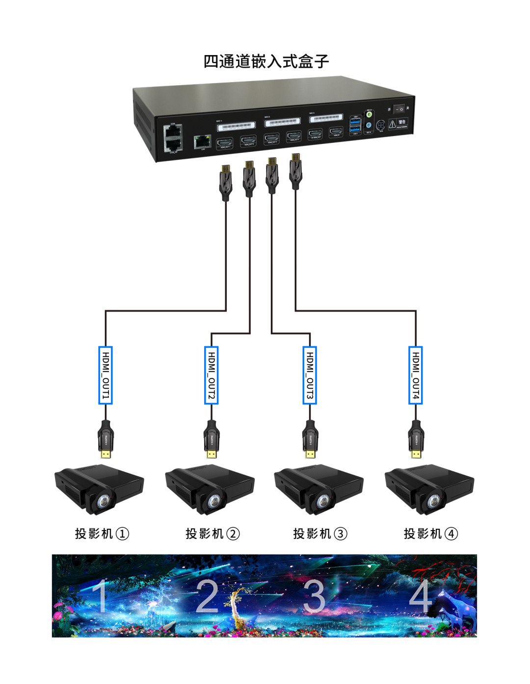 持投影机4边融合;支持1×N的任意融合,融合带宽度连续可调