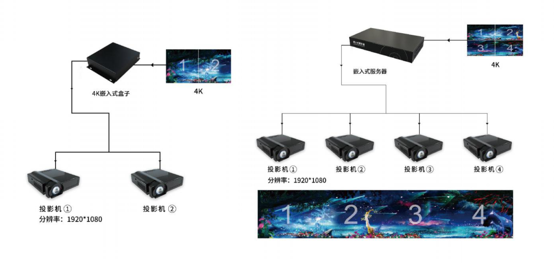 可以播放4KFPS60的H.265或者H.264的视频,一台机器实现播放,融合一体。